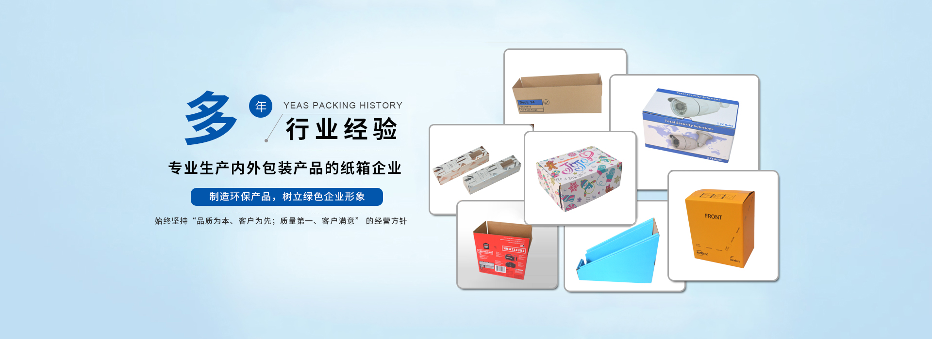 我司主要生產(chǎn)瓦楞紙箱、隔板,禮品盒、彩盒,啤盒;啤卡 ,紙護(hù)角 ,紙卡板,說(shuō)明書,不干膠,珍珠棉,輔助包材集生產(chǎn)和銷售于一體;公司在材料采購(gòu)、生產(chǎn)控制、成品檢驗(yàn)、售后服務(wù)包裝需求嚴(yán)格執(zhí)行ISO9001質(zhì)量體系標(biāo)準(zhǔn);我公司目前為SONY,欣旺達(dá)電子,嘉盛照明,庫(kù)偉實(shí)業(yè),洲明節(jié)能科技; 泛美照明科技, 怡化金融設(shè)備,美利龍餐具,中天世紀(jì),東芝電器 ,共進(jìn)電子等大中型企業(yè)公司配套供應(yīng)包裝紙箱,建立了穩(wěn)定的合作關(guān)系。